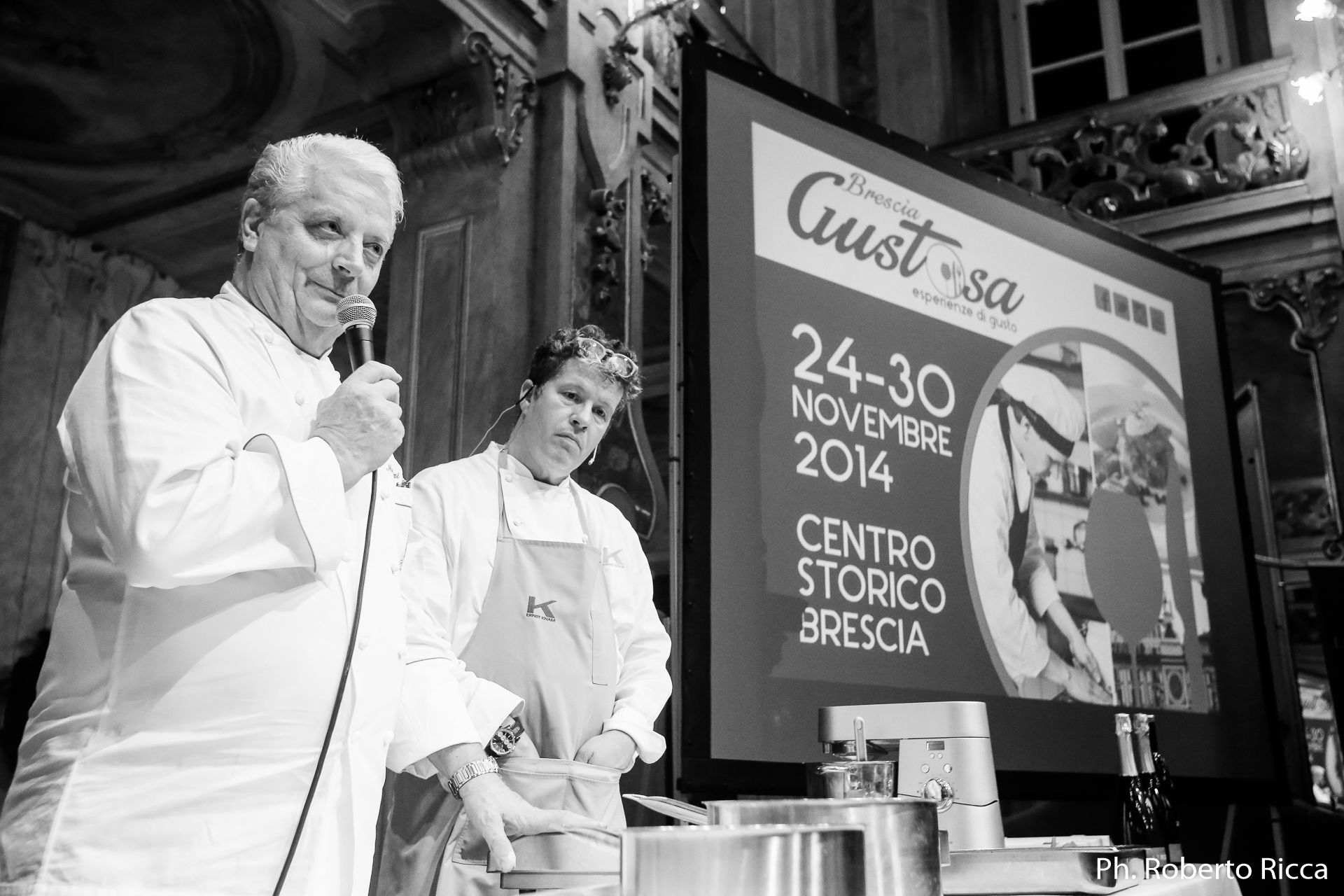 Far dialogare due personalità di spicco nel mondo della cucina come Iginio Massari e Ernst Knam non è cosa da tutti. Ci voleva Brescia Gustosa per creare l’occasione. La location era quanto di meglio ci si poteses attendere: il foyer del Teatro Grande di Brescia. E il pubblico delle grandi occasioni infatti non è mancato.